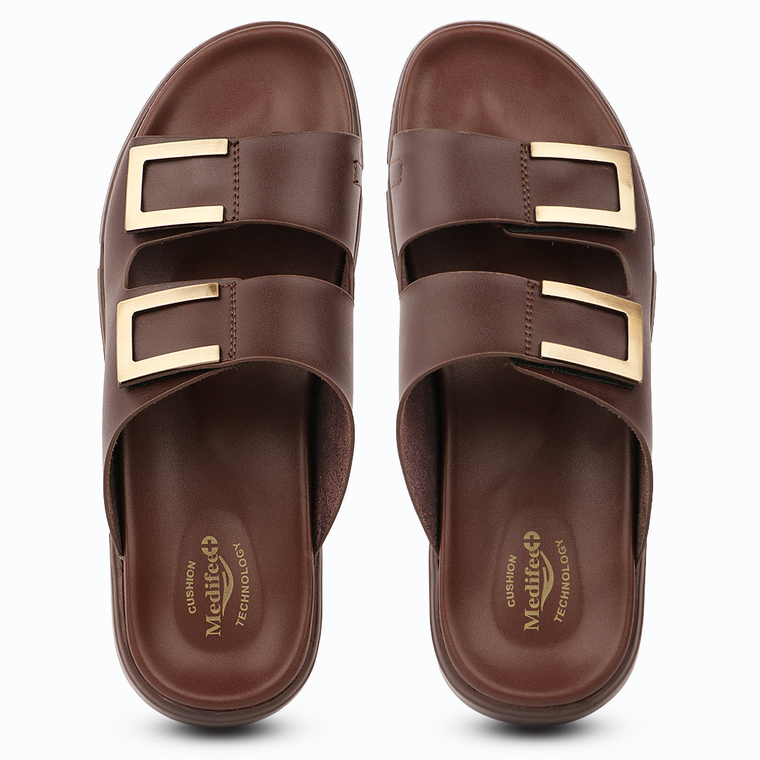 Experience all-day comfort with Medifeet Comfortable Toe-Ring Slide Sandals, thoughtfully designed with advanced cushioning and arch support technology. The soft contoured footbed reduces pressure on your feet while improving balance and posture. Featuring adjustable double straps with elegant metal buckles, these sandals offer a secure fit and a premium look. Lightweight, durable, and stylish, they are perfect for everyday use—whether at home, work, or casual outings.