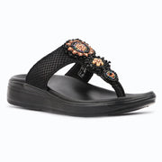 Medifeet Women’s Orthopedic Sandals with Arch Support – Comfortable Beaded Slip-On Flats - Black / 5