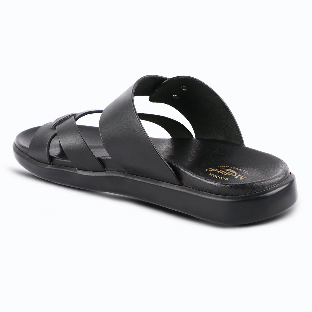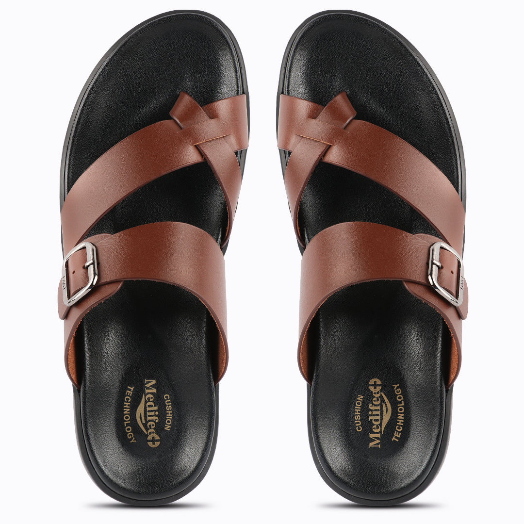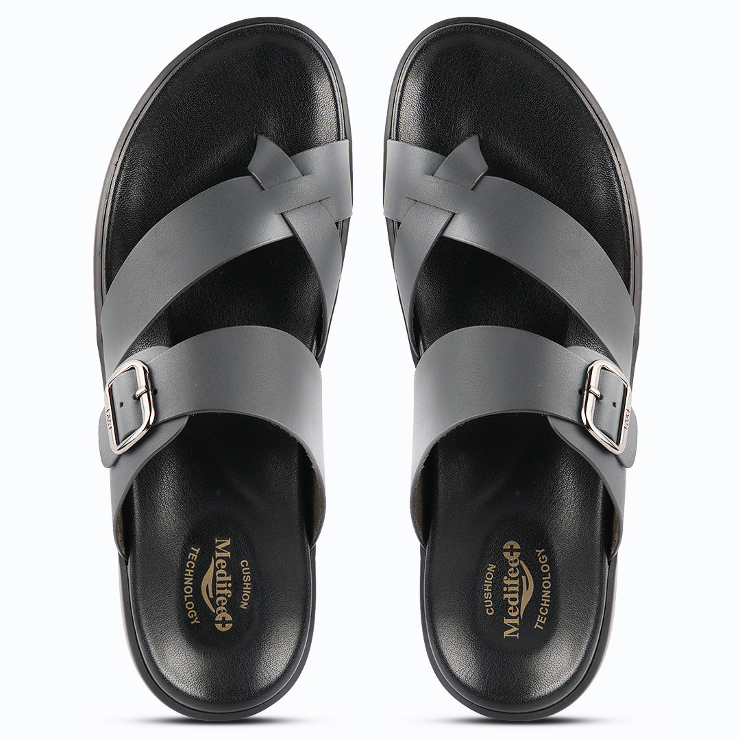 Experience ultimate comfort and style with our Medifeet Men's Cushioned slippers. Utilising our proprietary cushioning technology, these men’s sandals / slippers feature added comfort to the sole for all-day wear.