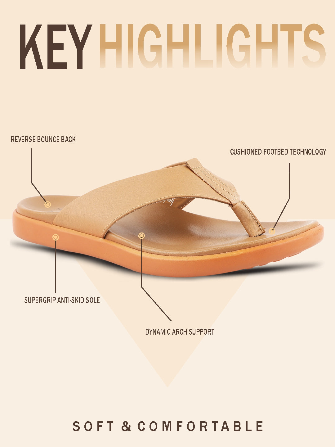 Medifeet Comfortable Men’s Slippers (Leather Slippers | V Strapped Design) - Tan / 7