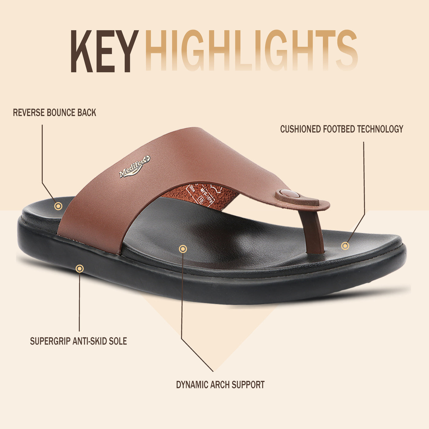 Medifeet Diabetic Slippers With Arch Support & Anti Skid || Comfortable & Cushion Slippers For Men's - Tan / 7