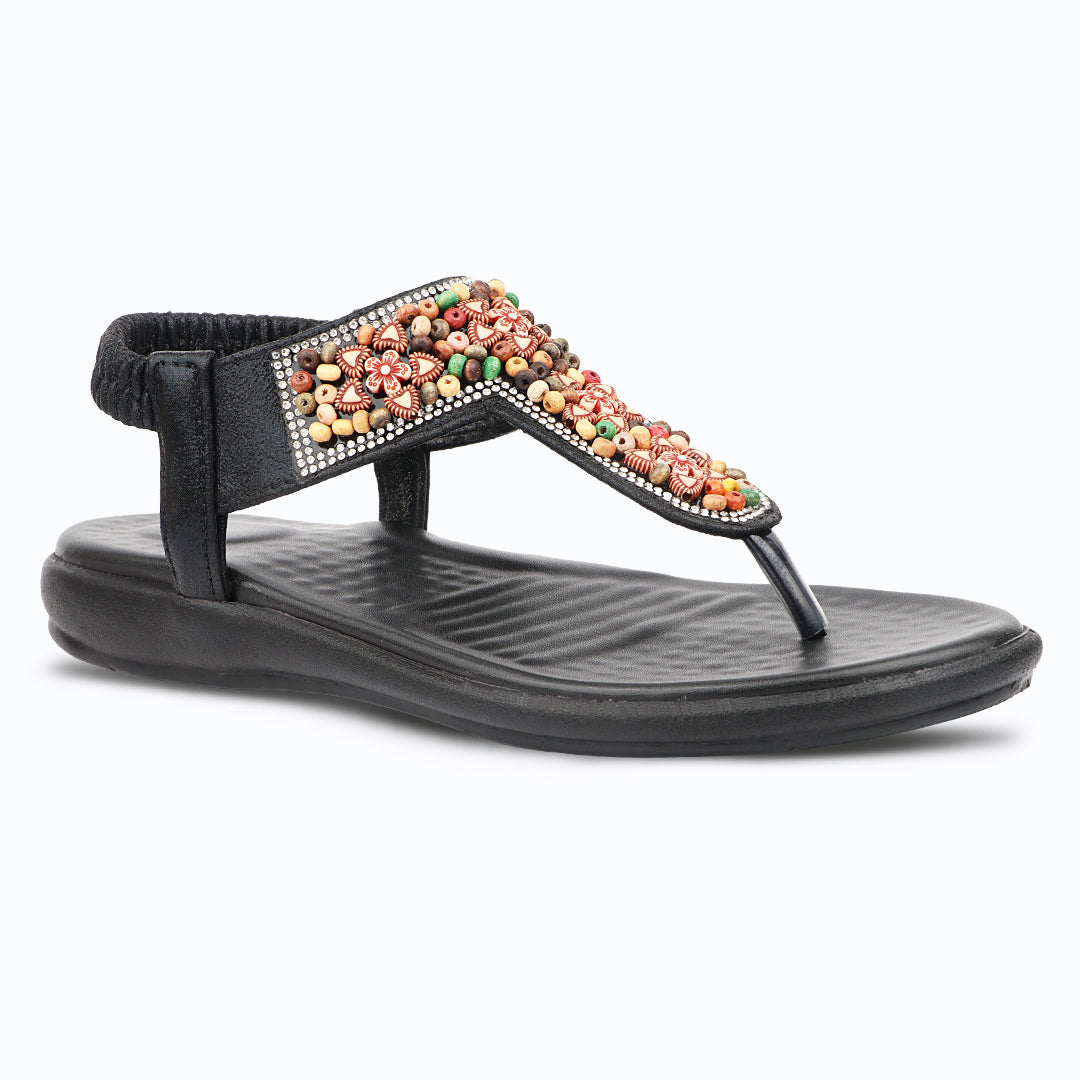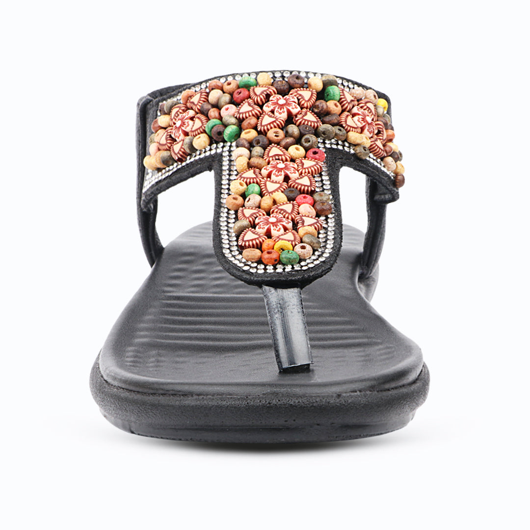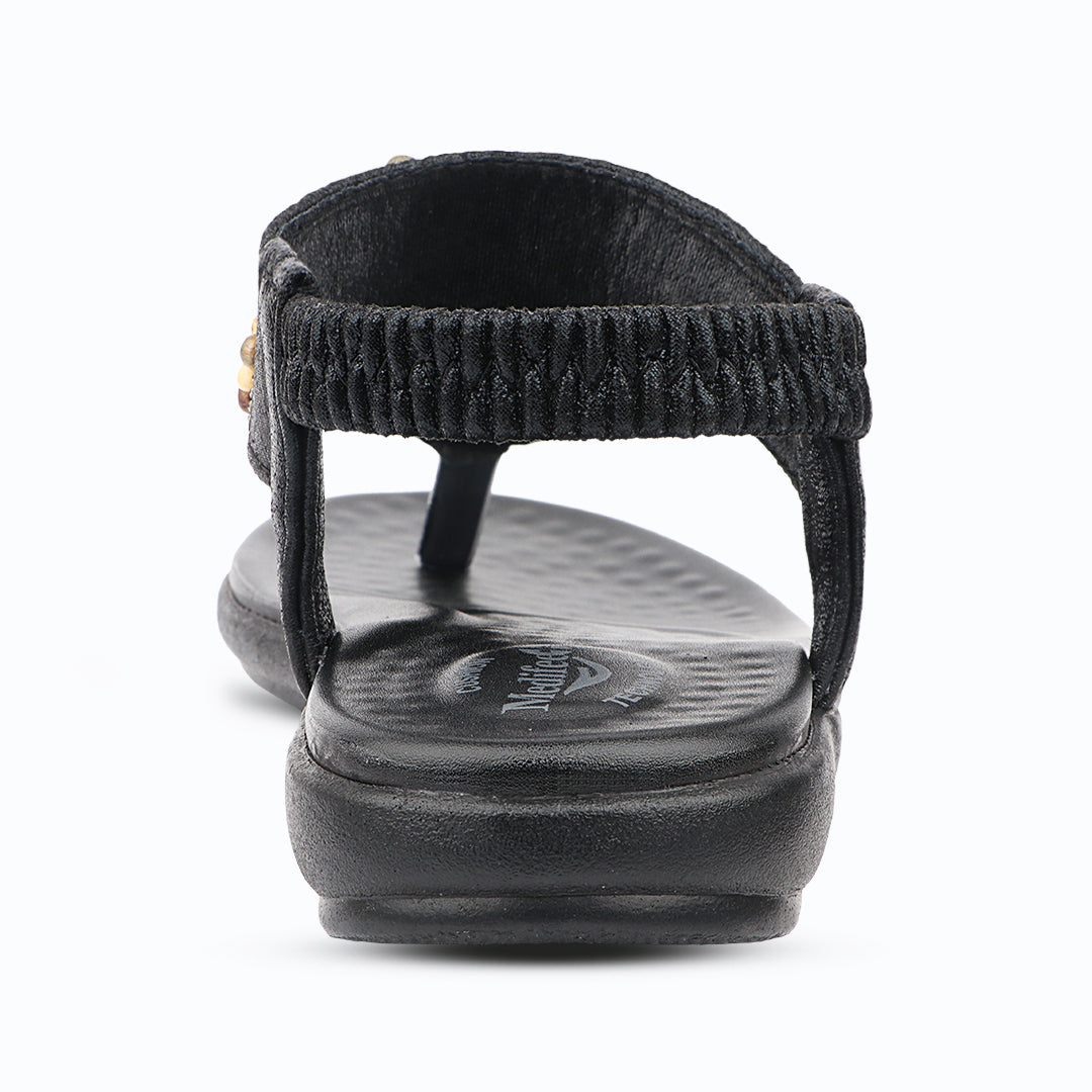 Medifeet Beaded Sandals for Women With Cushion Technology | Lightweight Orthopedic Cushion Flip-Flops | Fashion Meets All-Day Comfort - Black / 4