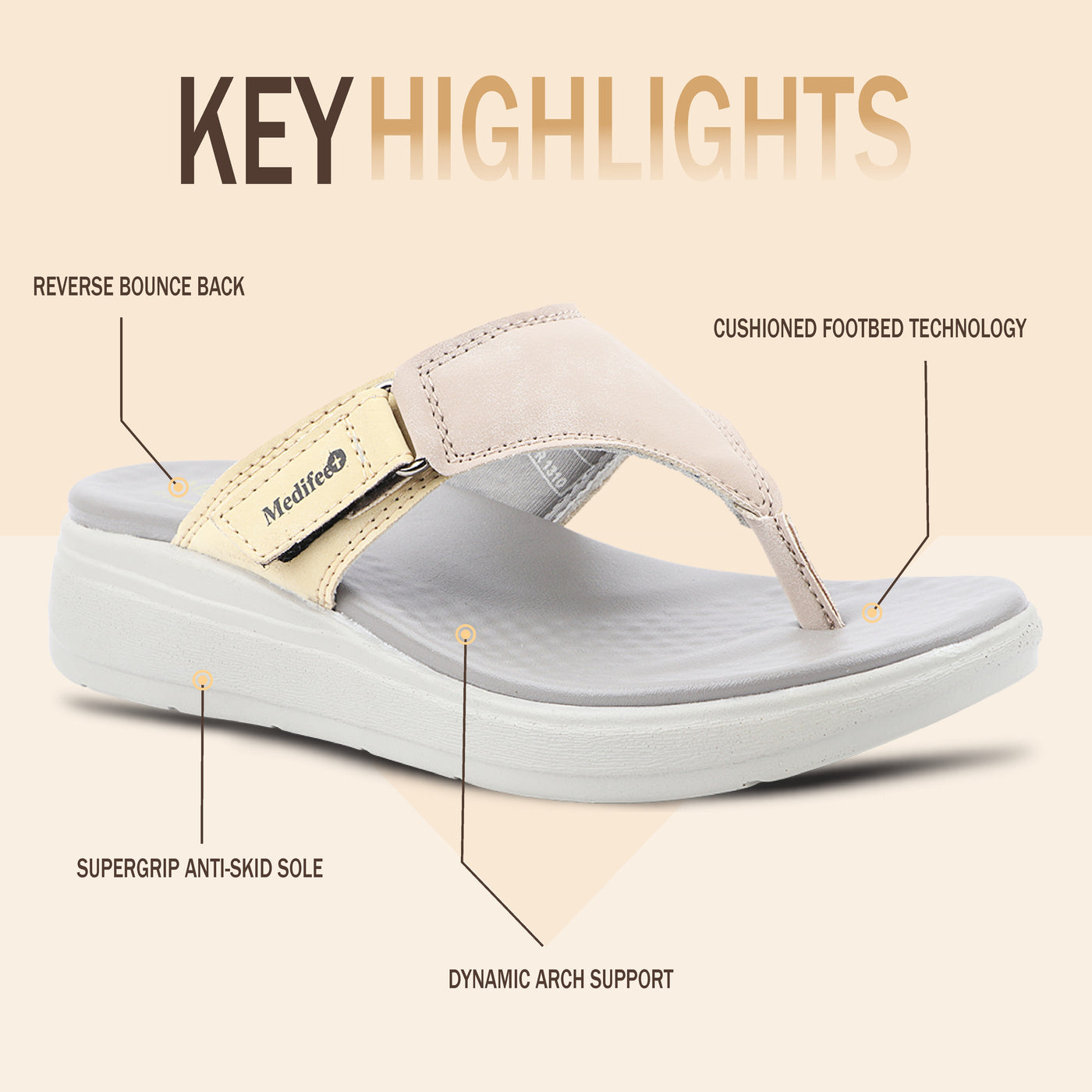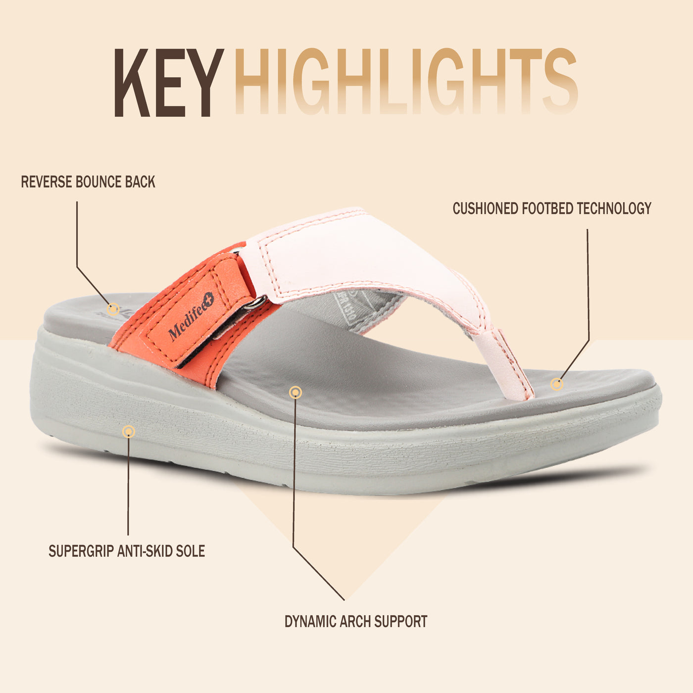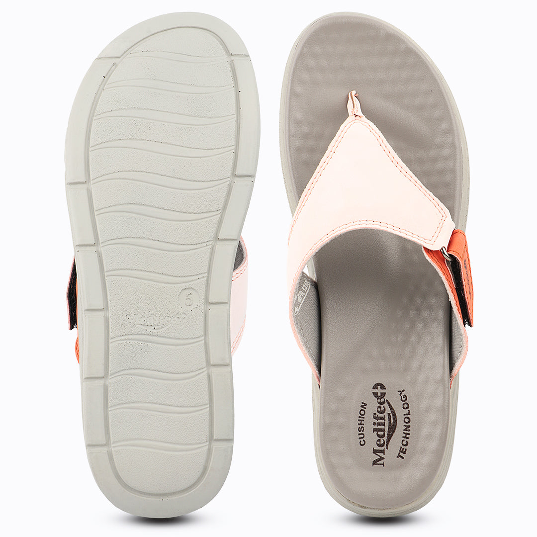 Medifeet Side V-Strap Comfortable Sandals with Arch Support For Women's - ROSE PINK / 5 / Slip-on